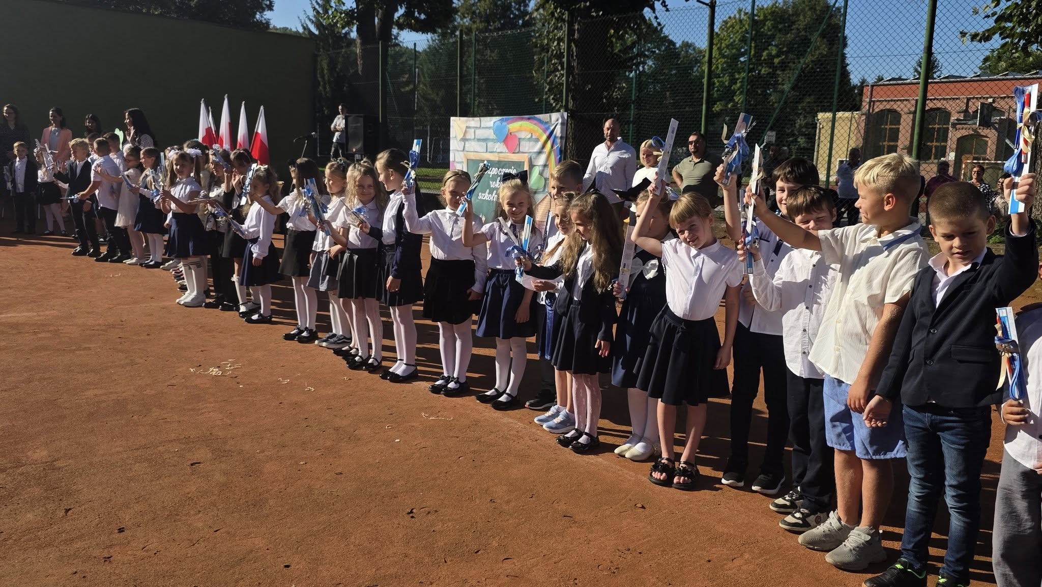 W poniedziałek, 1 września br., na korcie tenisowym w SP nr 1 w Lubaniu, odbył się uroczysty apel z okazji inauguracji nowego roku szkolnego 2025/2026. Po ponad dwóch miesiącach rozłąki z nauką społeczność Jedynki spotkała się ponownie, aby wspólnie celebrować ten szczególny dzień. Podczas apelu wysłuchaliśmy krótkich i motywujących przemówień: dyrektor placówki – p. Beaty Myśliwiec, inspektor referatu edukacji miasta Lubań – p. Marleny Kiełdanowicz i nowej przewodniczącej Rady Rodziców – p. Alicji Krężel. Zostały one nagrodzone gromkimi brawami. Dodatkowo powitaliśmy też tegorocznych pierwszoklasistów.Teraz przed nami kolejne wyzwania oraz nowe, ciekawe pomysły do realizacji. Ponadto, na początku bieżącego roku szkolnego, życzymy wszystkim, aby był on spokojny i bezpieczny, obfitował w sukcesy edukacyjne oraz wychowawcze. Natomiast naszym uczniom życzymy, by mieli niesamowitą radość z odkrywania małych i wielkich tajemnic wiedzy, a nauczycielom – ogromu satysfakcji z pracy z dziećmi i licznych sukcesów zawodowych.