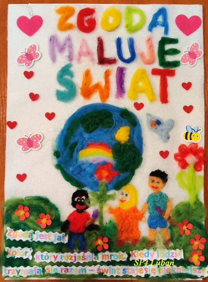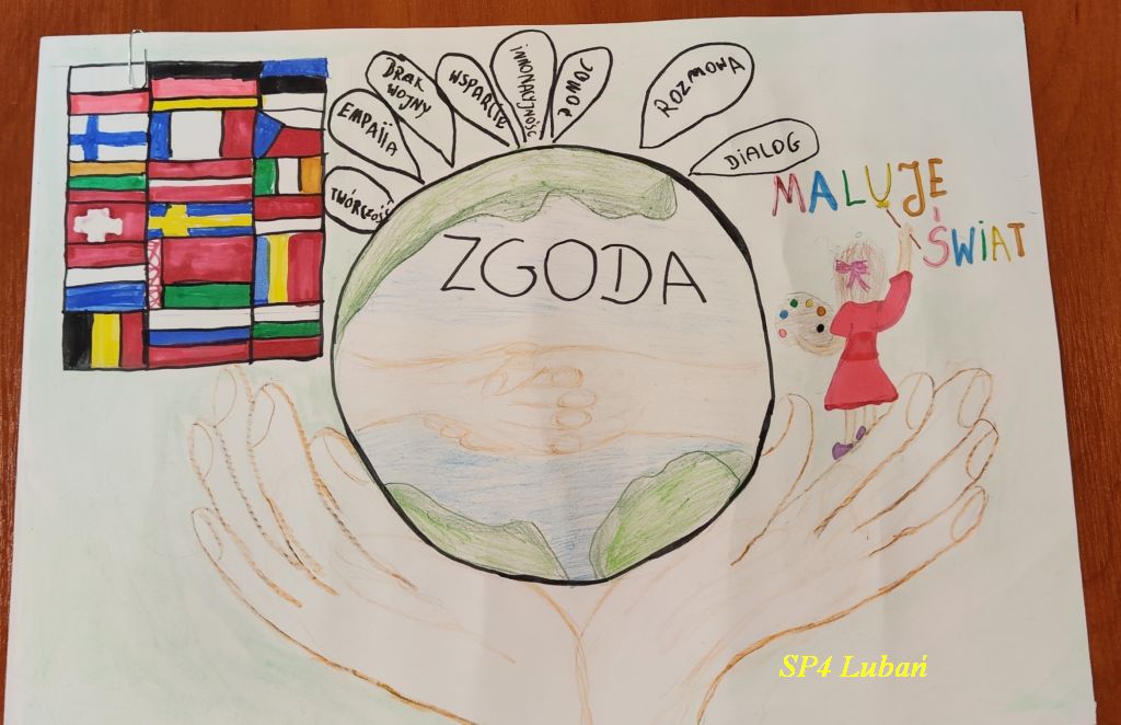 Nasi uczniowie: Laura Skiba, Adela Wrzeszcz, Alicja Dudek, Nadia Wrzeszcz, Lena Skiba, Natalia Bednarska, Paweł Węgrzyn i Justyna Łubkowska włożyli ogrom serca i kreatywności w swoje dzieła, które w różnorodnych technikach plastycznych pokazują, czym dla nich jest zgoda – tworząc barwne kompozycje podkreślające siłę wspólnoty. Każda praca jest indywidualną wizją młodego artysty i dowodem jego wrażliwości.