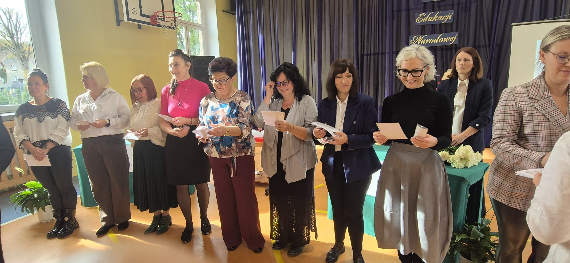 W piątek, 10 października, w SP1 odbyły się uroczyste apele z okazji Dnia Edukacji Narodowej. Na sali gimnastycznej – w dwóch turach – zebrali się wszyscy nasi uczniowie z kl. 1-8, pracownicy obsługi i administracji oraz całe grono pedagogiczne z dyrekcją szkoły na czele. Wśród gości wydarzenia były panie: Katarzyna Kempa-Kujawa – kierownik Referatu Edukacji, Alicja Krężel i Beata Kuźmicka – przedstawicielki Rady Rodziców. Apel zaś składał się z dwóch części: artystycznej (m.in. „Familiady” wykonaniu uczniów kl. 7-8) oraz oficjalnej, czyli wręczenia Nagród: Dyrektora Szkoły i Burmistrza Miasta Lubań.