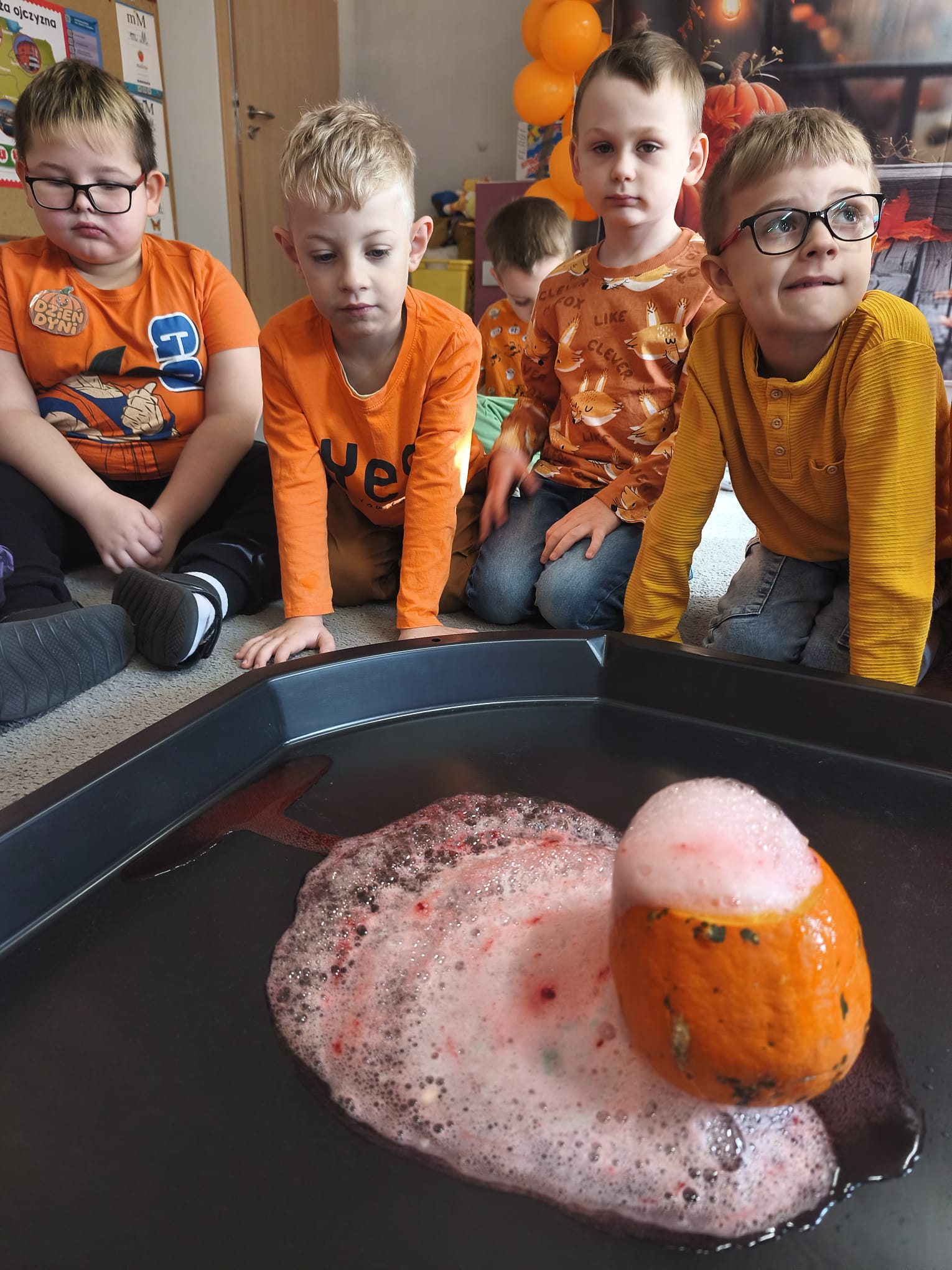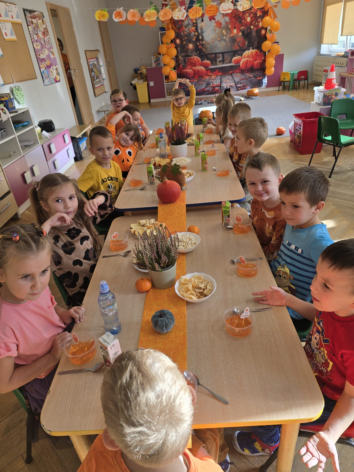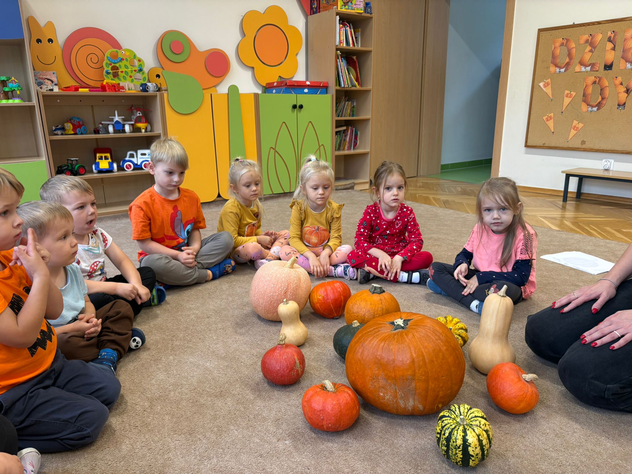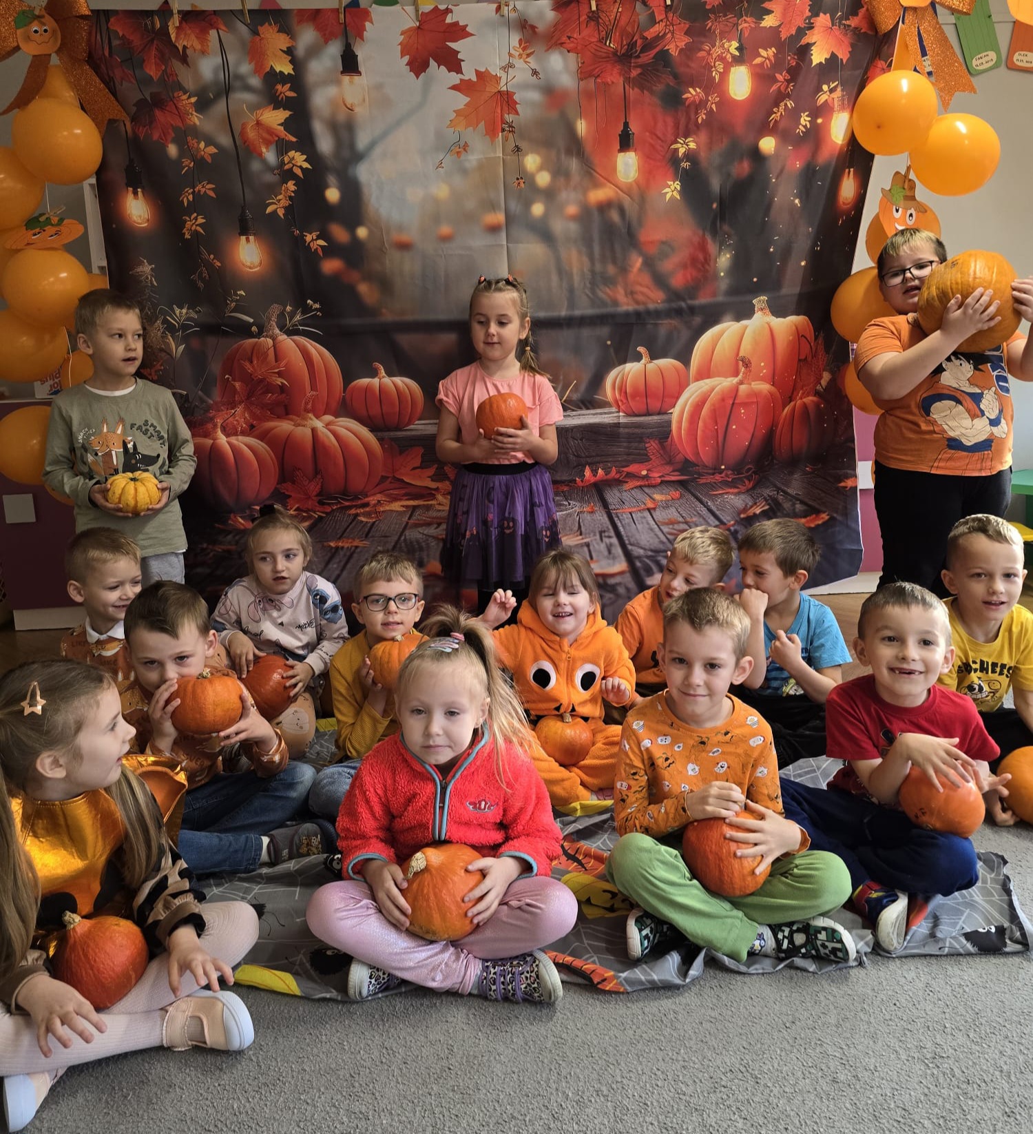 W naszym przedszkolu obchodziliśmy wesołe i pomarańczowe święto - Dzień Dyni. Dzieci przyszły ubrane w stroje w odcieniach pomarańczy, a w sali pojawiły się dyniowe dekoracje. Podczas zajęć przedszkolaki poznały różne gatunki dyni, dowiedziały się, w jaki sposób rośnie i jakie ma zastosowanie w kuchni, oraz w dekoracjach jesiennych.