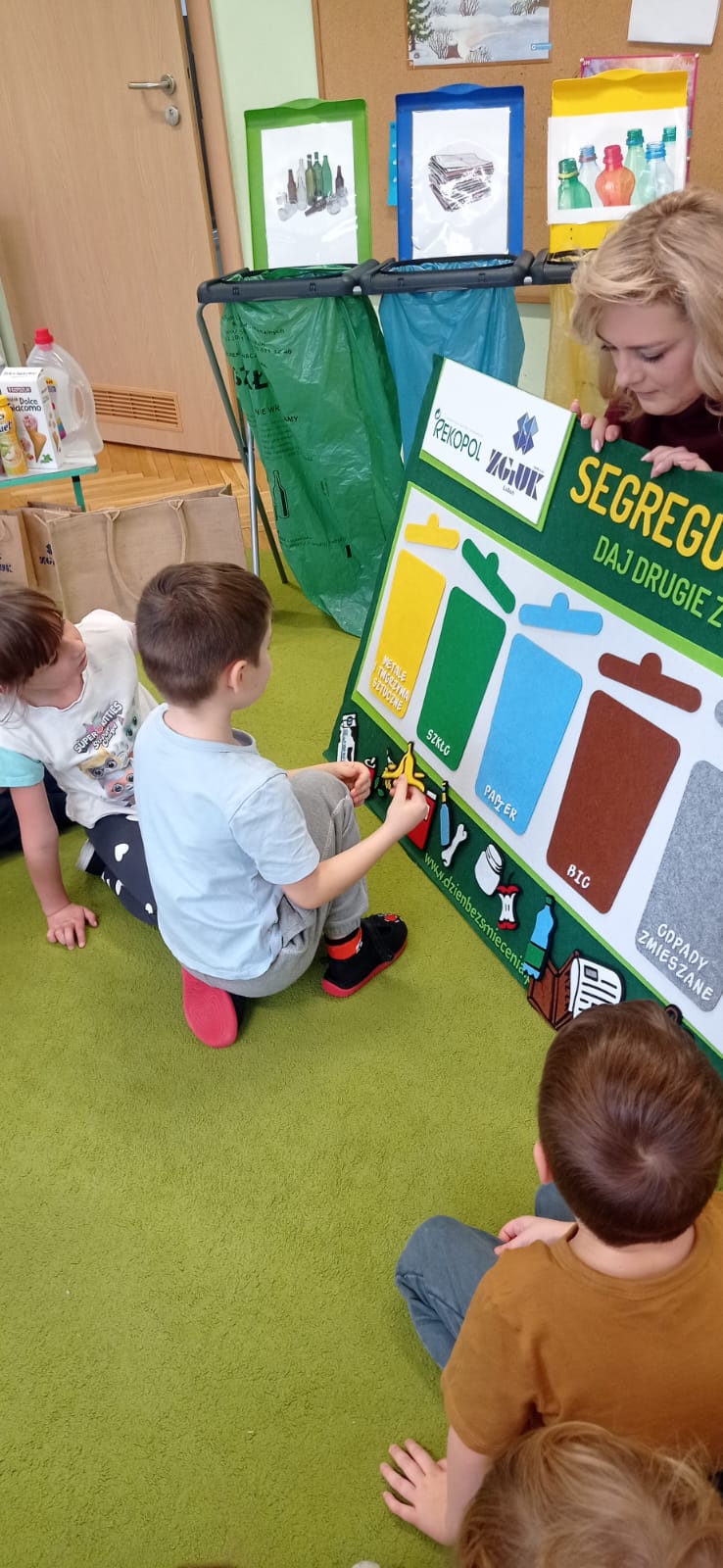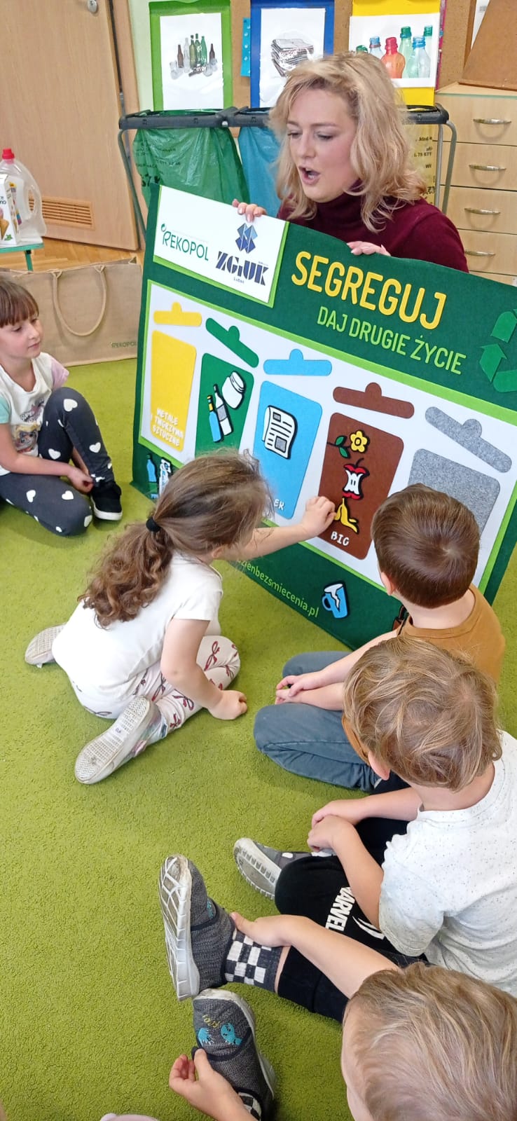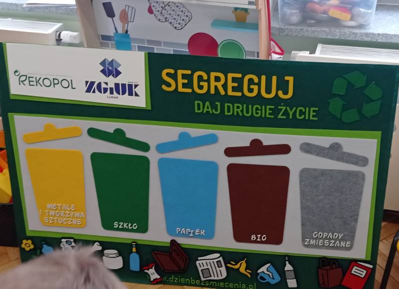 Dzieci z PM nr 5 im. J. Tuwima w Lubaniu miały możliwość spotkania edukacyjnego z pracownikami ZGiUK w Lubaniu. Poznały jak prawidłowo segregować odpady używając kolorowych pojemników.